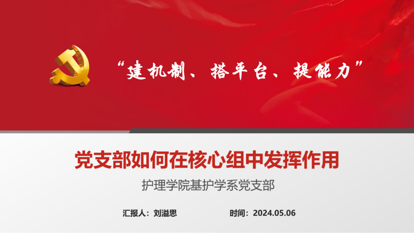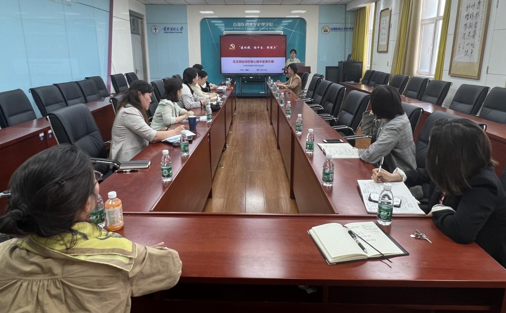 基护学系党支部书记刘溢思围绕“建机制、搭平台、提能力”这个主题,从党建立制度、党引领决策、党管理人才三个方面为参会人员进行了详细的讲解,她结合学系核心组的实际工作将基护学系党支部的独特探索和反思分享给了大家。与会人员就如何更好地在学系核心组内履行党支部职能进行了深入交流和讨论。魏京云强调,党支部工作作为学院党建工作的重要组成部分,应当在学系发展中提供坚强的政治保障,引领党员教师积极践行新的发展理念,充分发挥党建工作在学术研究和教学实践中的政治引领作用。
