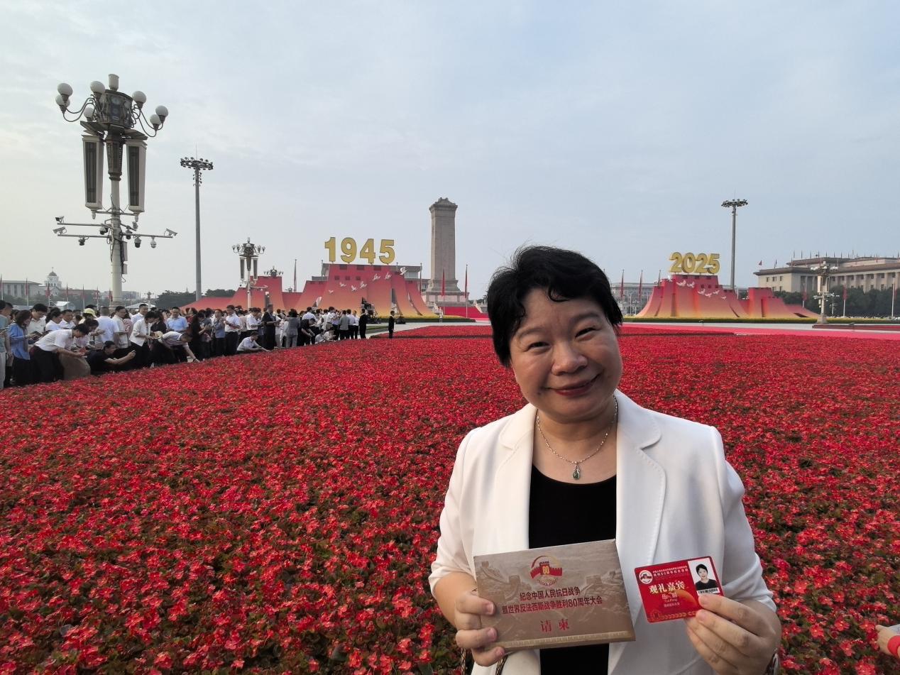 9月3日,纪念中国人民抗日战争暨世界反法西斯战争胜利80周年阅兵在北京天安门广场隆重举行。我院护理学基础学系主任岳鹏教授作为首都教育界代表,受邀与来自各行各业的先进人物一道现场观礼,亲身见证国之重器铿锵列阵、雄鹰编队呼啸苍穹的历史时刻。
