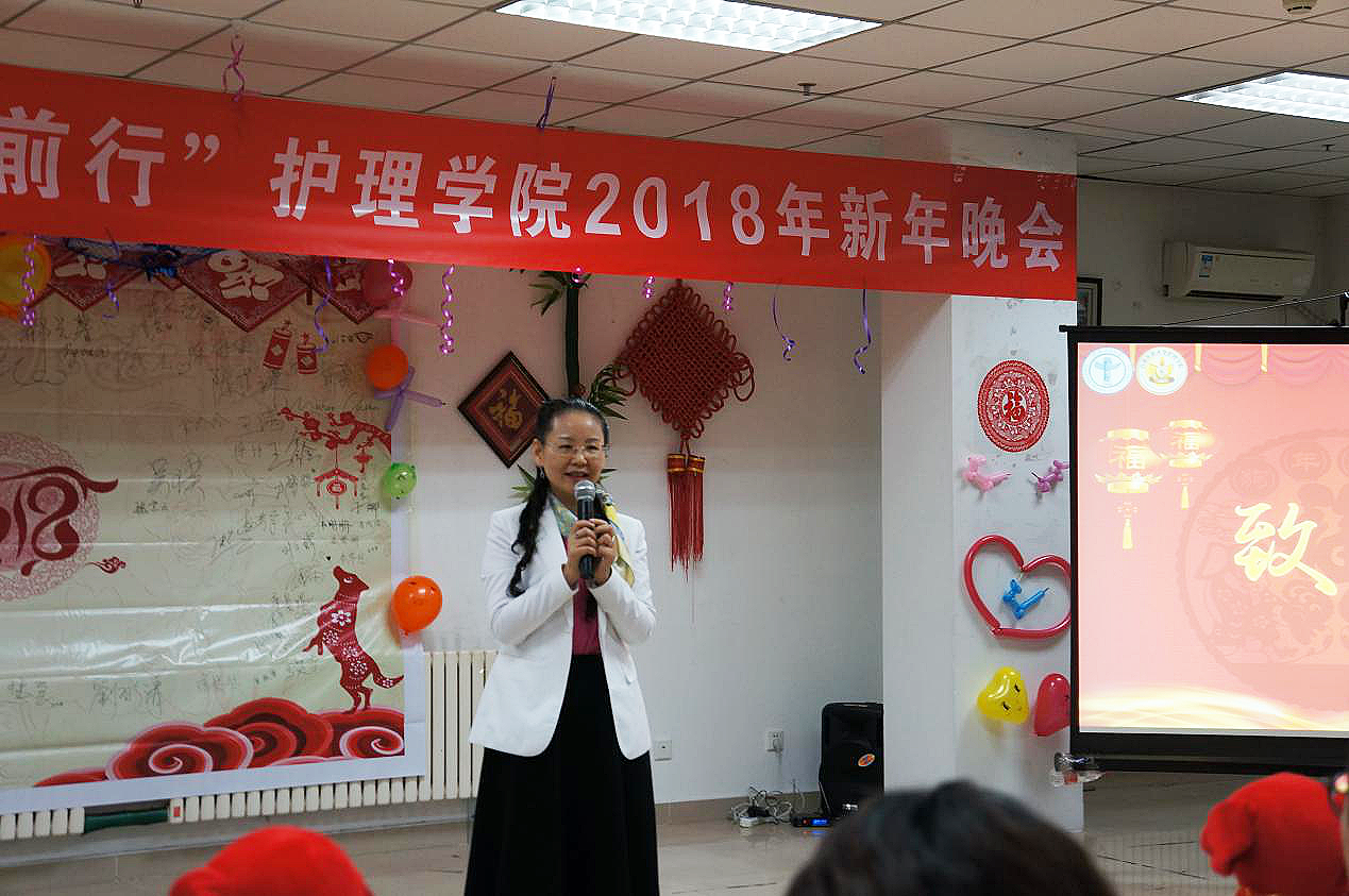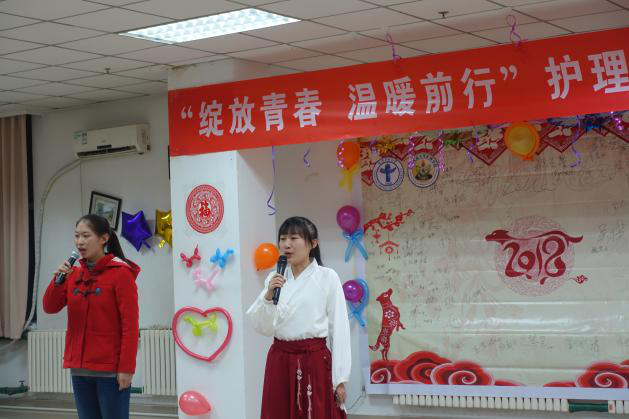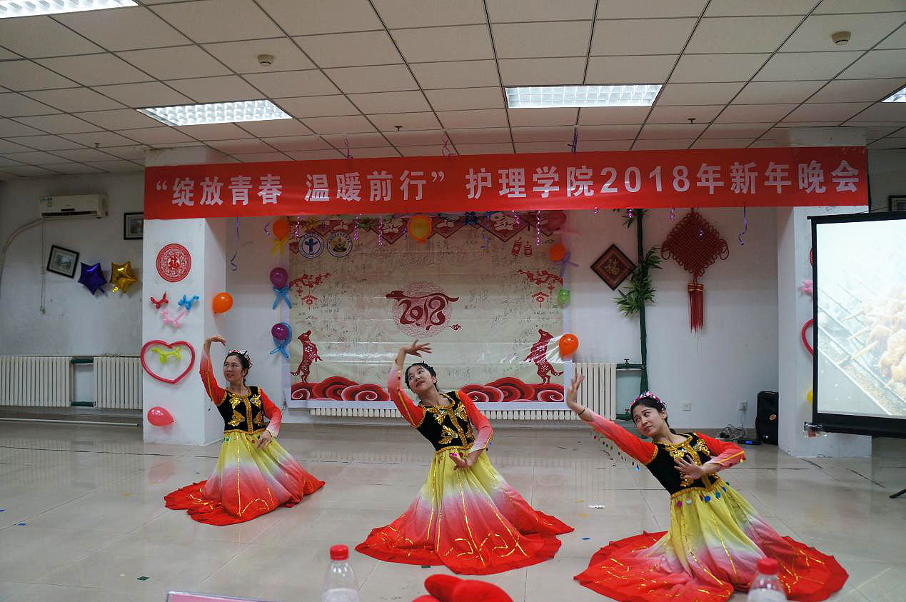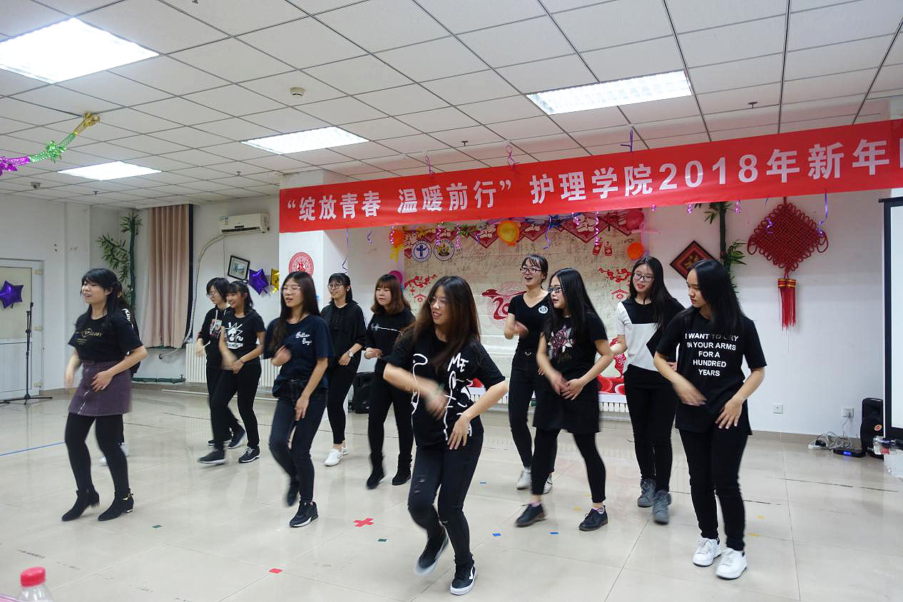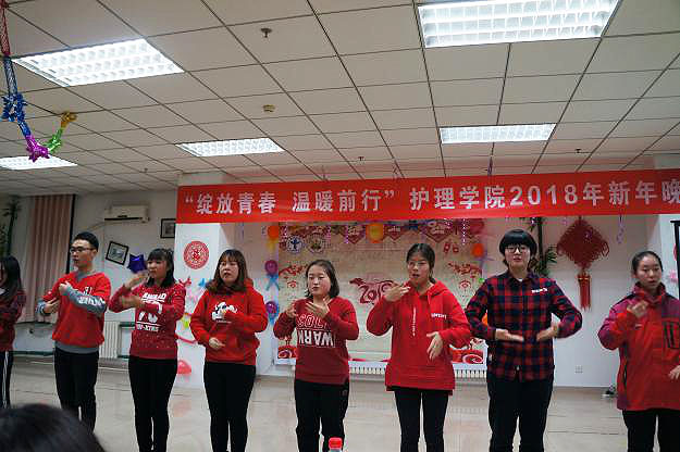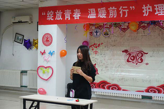 201712月27日晚上六点,九色视频 在博乐楼302活动教室举办了“绽放青春,温暖前行”2018年新年晚会,此次晚会主要由学院学生会文艺部主办,宣传联络部和其他部门协助,九色视频 院长吴瑛老师、学院党总支书记魏京云老师、学院副院长杨芳宇老师和王艳玲老师,学院党总支副书记金玲玲老师以及其他学院老师们也出席了本次晚会。15级、16级、17级护理本科班以及17级研究生班的学生们在新年晚会上的表现更是大放异彩。节目形式多种多样,效果令人赞不绝口。